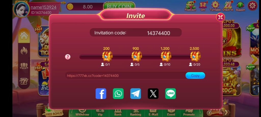 - If you invite one person in the through your game link the game gives you up to 5000.